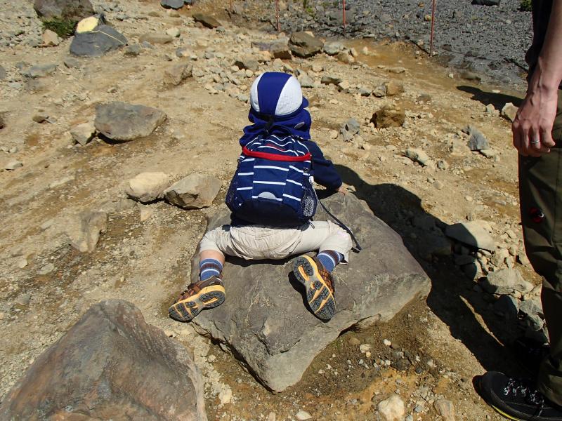 通常のコースタイムではさんちょう駅から茶臼岳までは1時間程度ですが、息子のペースで登ると2時間かかりました。途中でおむつを替えたり、「もう歩かない!」とぐずったりと今回もいろいろありましたが、家族で山頂までたどり着くことができました。