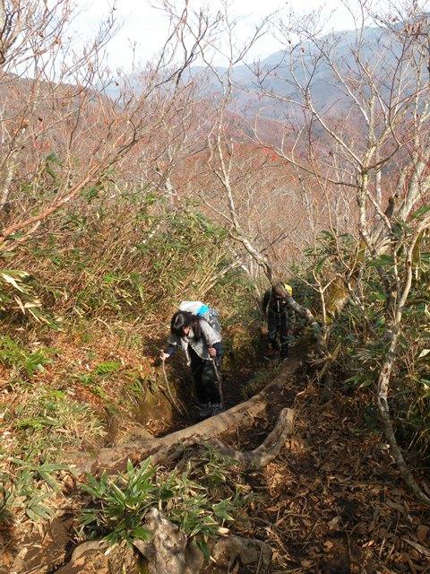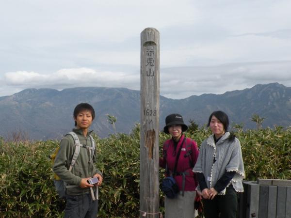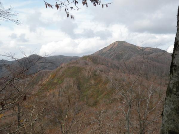 登山口より上は、そろそろ紅葉も終わりかけています。山頂付近は、冬化粧。(雪はありませんが)(^^)