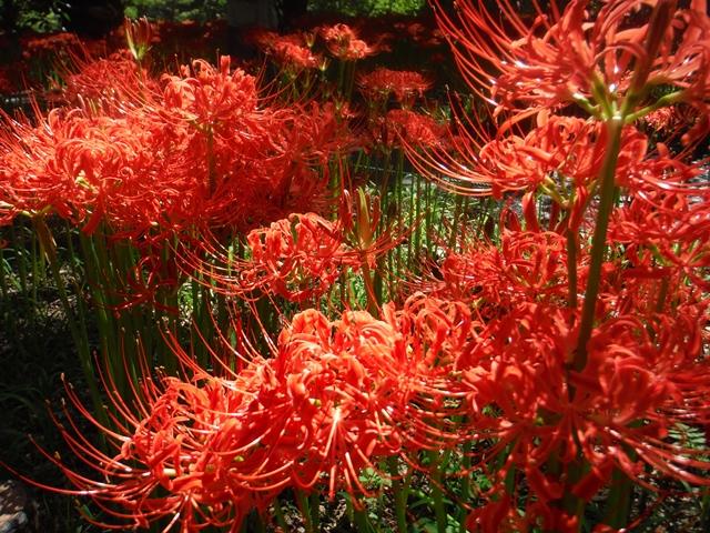 赤い曼珠沙華があたり一面に咲き乱れとてもきれいでした。