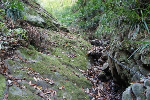 雨巻山の沢コースを歩かれる時は滑りますので気をつけて下さい。