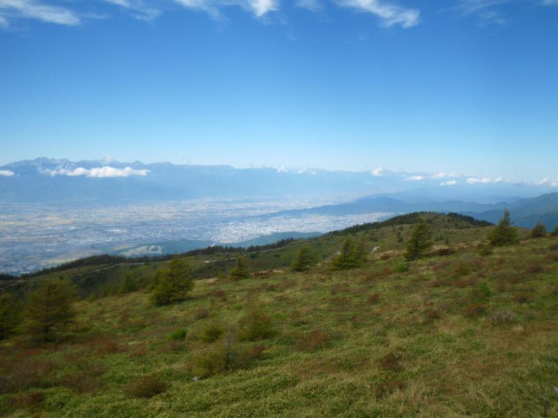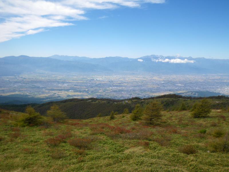 北の扇温泉からの登山道もありますが、塩尻側・松本側から高ボッチスカイライン、その先の鉢伏高原スカイラインと絶好のドライブルートで鉢伏山荘まで上がると、山頂まではのんびりと歩け、家族連れでも安心、松本・塩尻に住んでいればお弁当を持って、散歩できる手軽さです。