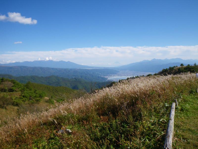鉢伏山(はちぶせやま・1929m)は日本300名山の一つで、どの方向から見てもお鉢を伏せたような円丘状の山容から鉢伏山と呼ばれ、南端の塩嶺峠から北上する稜線上には東山、高ボッチ山、鉢伏山、二ッ山の各ピークがありその最高峰が鉢伏山でこのあたりは扇峠を挟んで、隣の美ヶ原と共に筑摩山地と呼ばれる。山頂からは諏訪湖・富士山、さらに中央アルプス、北アルプス・南アルプス・御獄山・乗鞍岳など360度の大パノラマが広がります。