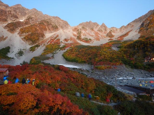 前日、横尾山荘に泊まり日の出前に涸沢まで行き、モルゲンロートと紅葉を楽しんできました。