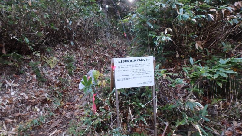 - 冷水コース登山口(40分)冷水小屋(30分)札幌岳(50分)冷水コース登山口
