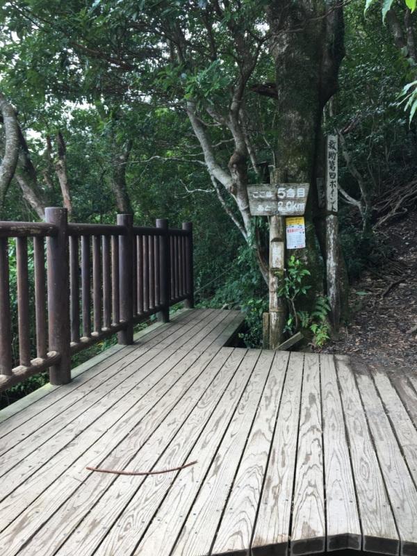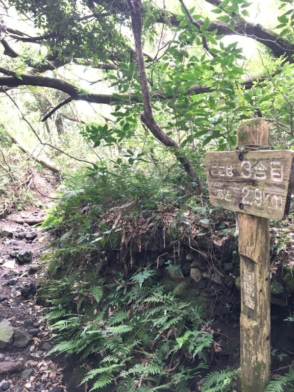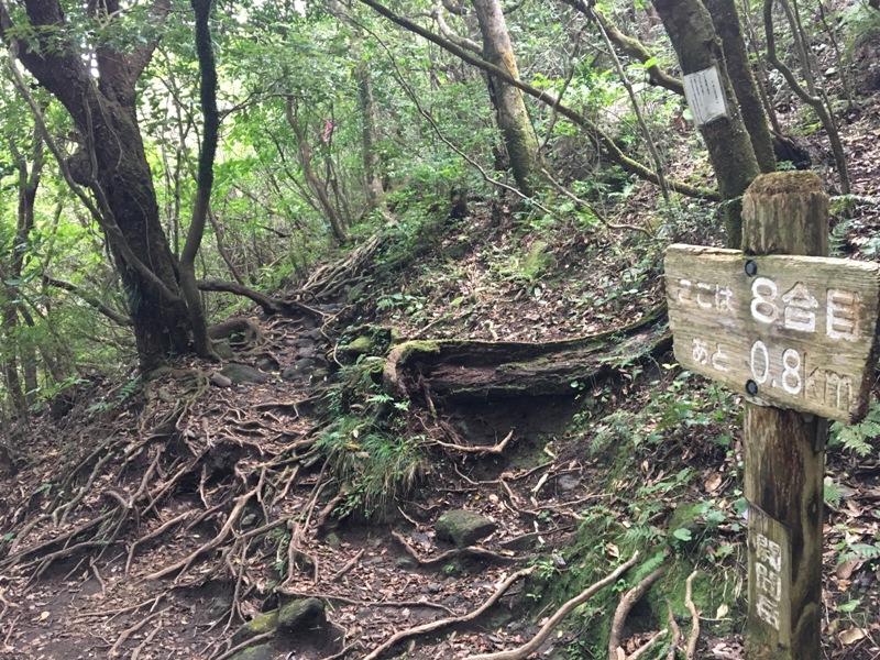5合目、7合目、8合目のあたりで木々が切れて開けます。そこまでは我慢。