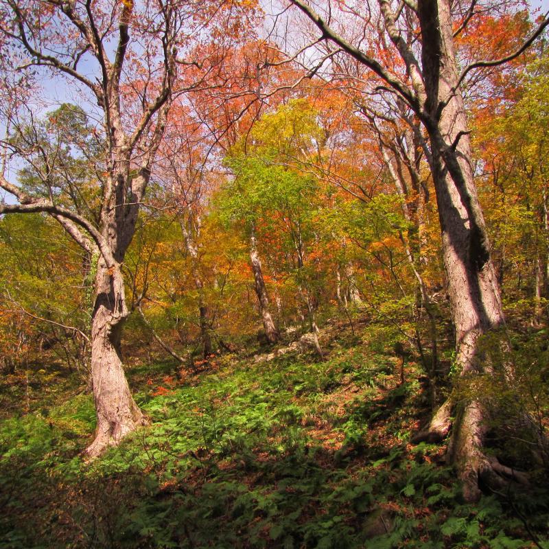 森の中で時々秋らしい色彩が輝きを放つと、思わず足が止まってしまいます。