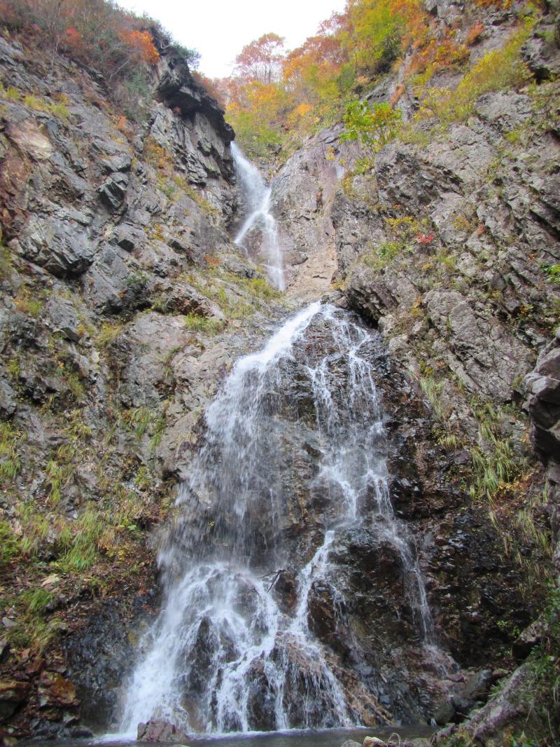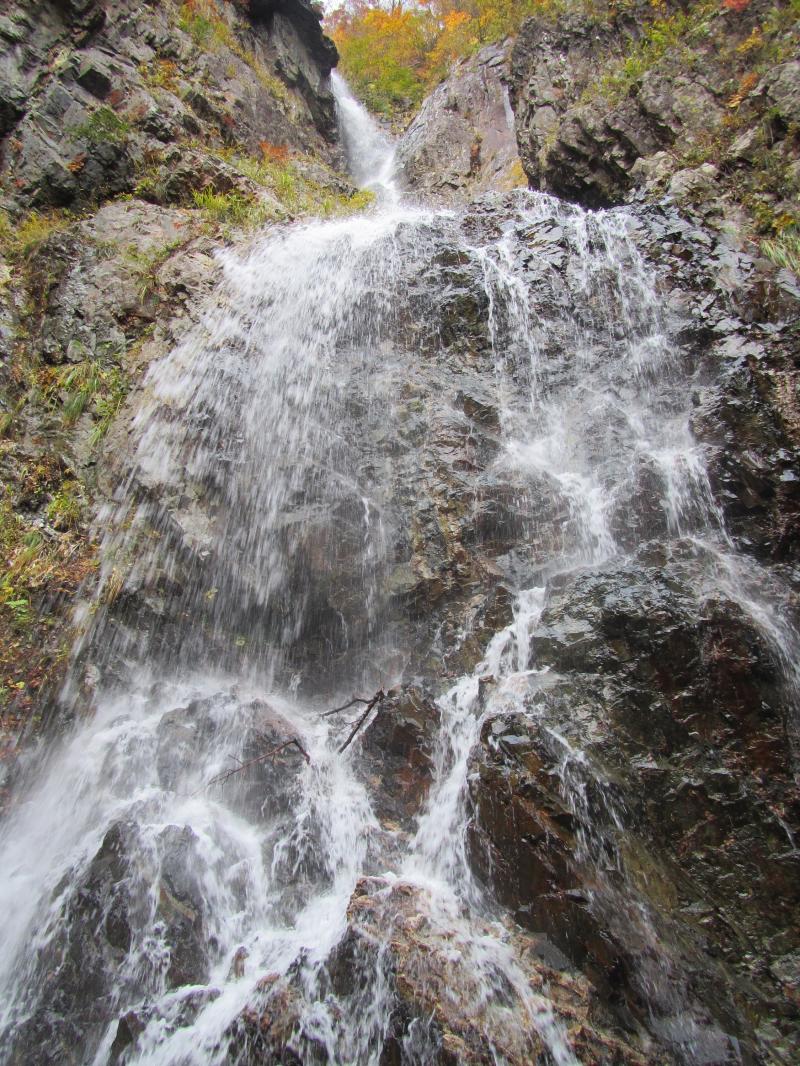大滝の手前で岩を割ったような狭さで滝を落として出合います。