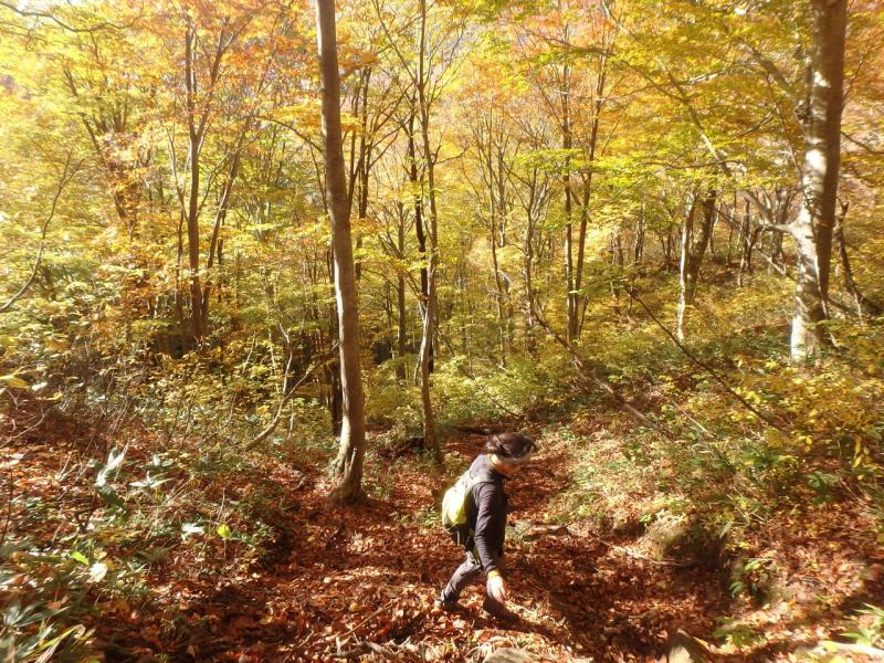 - 土合橋を渡り松ノ木沢の頭(1484m)まではひたすら急登。先日の台風の影響もあってか、標高1400m付近から尾根沿いに少し雪が残っている状態。1700m付近からは積雪量も増え、軽アイゼン(6本爪)を装着。松ノ木沢の頭からは視界が開け、稜線歩きとなる。所々鎖場があるので注意して足場を確保する必要がある。