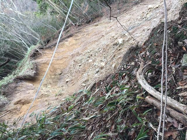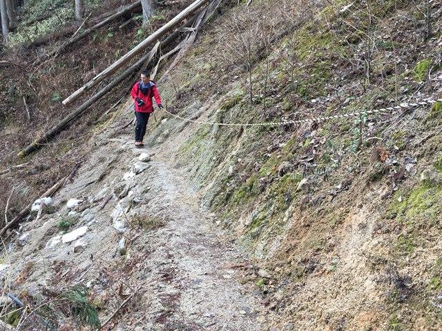 新しくそばに登山道が作られており、途切れた登山道には進まないようにロープが張られていますが、