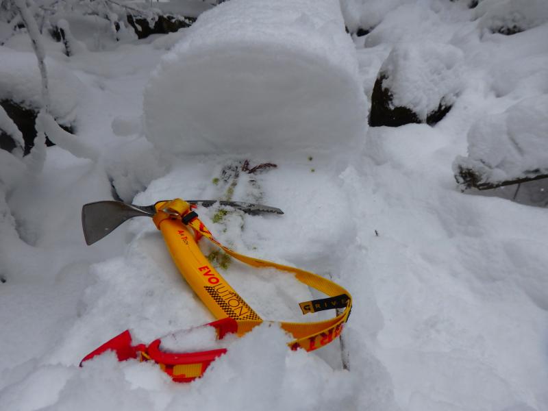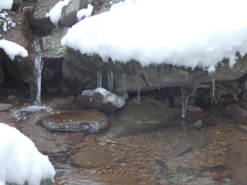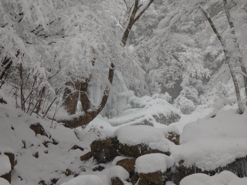 雪で岩と岩の隙間が分かりにくくなっています。