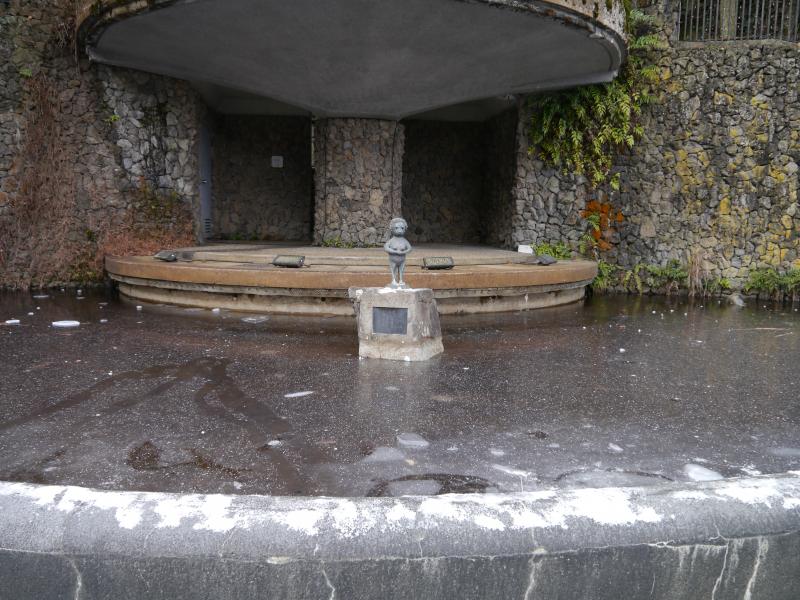 ・ここ数日間の冷え込みでさぞかし氷結してるのではと、期待いっぱいで有馬、六甲の冬の名物氷瀑を眺めに行ってきました。 まず有馬温泉駅そばの湯けむり広場の池はカチコチに凍っています、いい感じに冷えていて幸先いいですね。