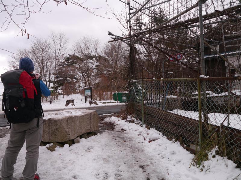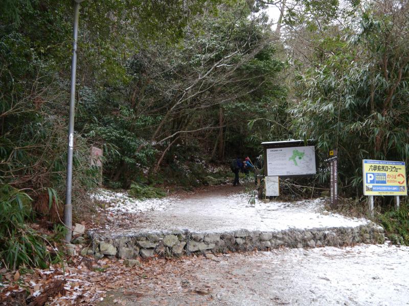 ・一年前同様にロープウエイ有馬温泉駅から先は一部通行止めなので、炭屋道から入山ですが、登山口からもう地面は真っ白で、念のため軽アイゼンは早めに装着します。