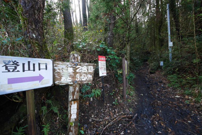 - 開聞ふれあい公園駐車場ー(5分)ー登山口ー(55分)ー5合目ー(45分)ー登山口ー(5分)ー開聞ふれあい駐車場