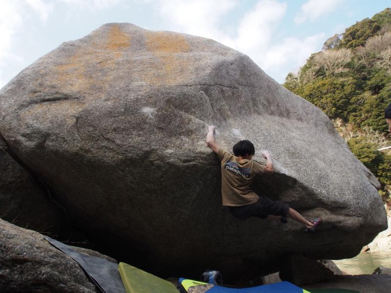 最初はエリアの入り口付近にあるフィネスの岩で皆でアップ。