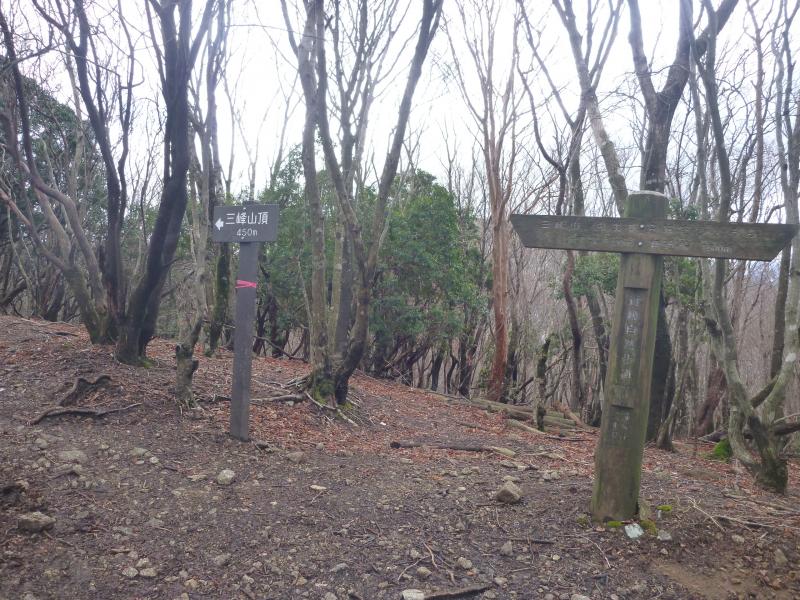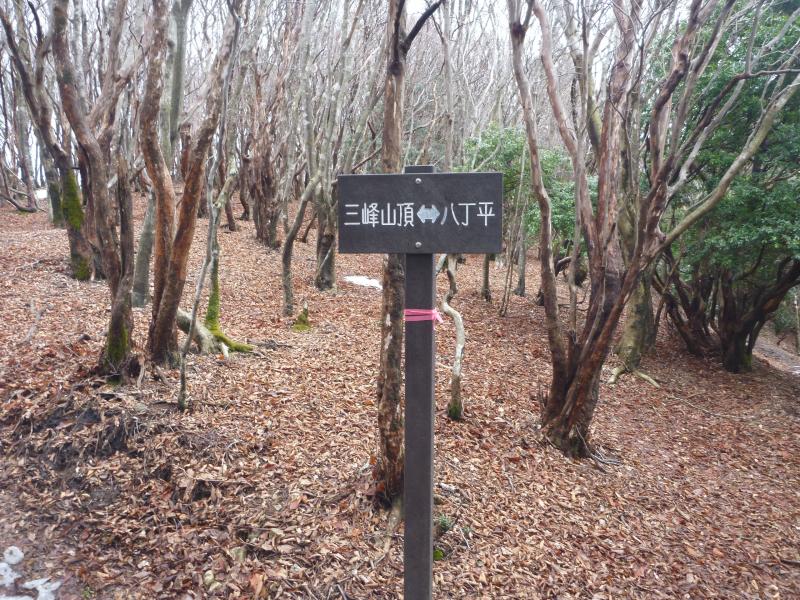 - 駐車場(90登り尾コース)避難小屋(20)三峰山頂(15)
