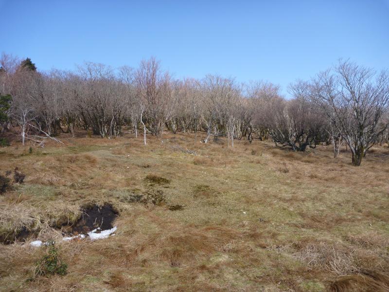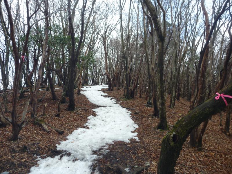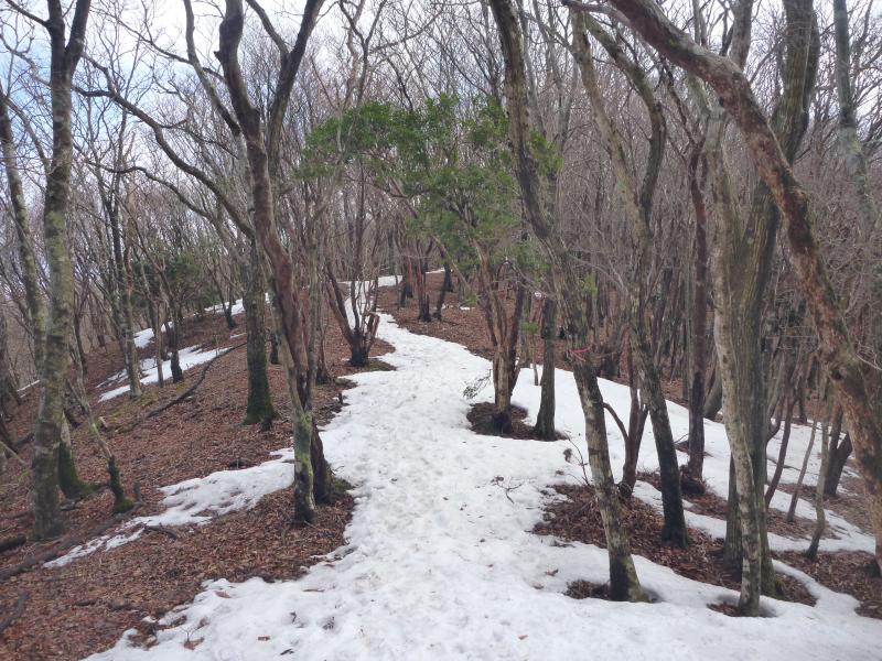 避難小屋を超えて峠にさしかかるくらいでようやく雪がありました。
