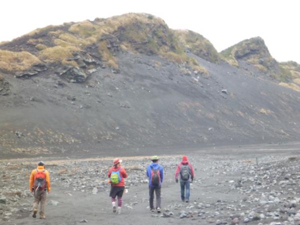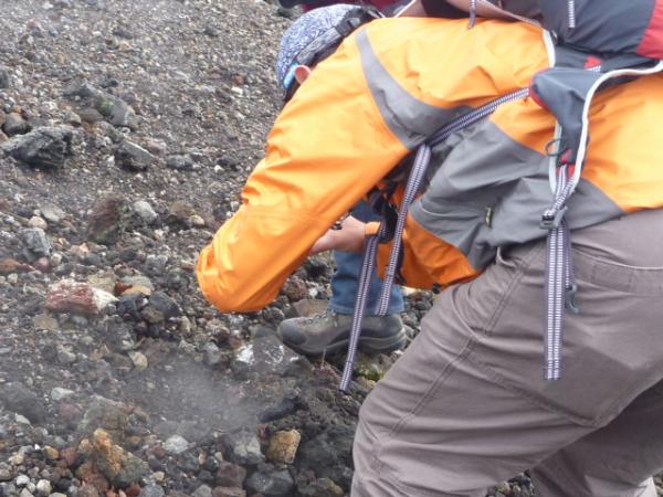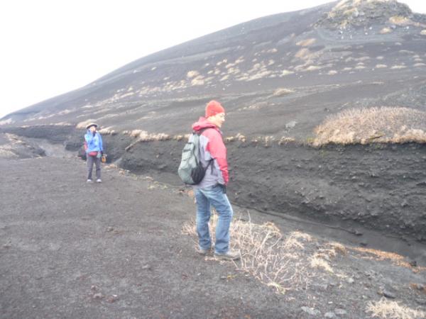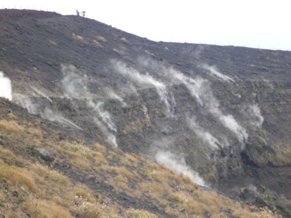 荒々しい火口壁からは今でも水蒸気がたなびき、地熱もかなり高い。