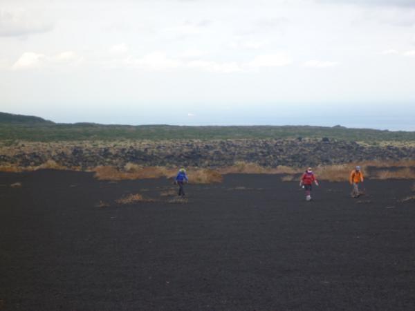 度重なる噴火の歴史によって形成された、広大な砂漠地帯を歩けば