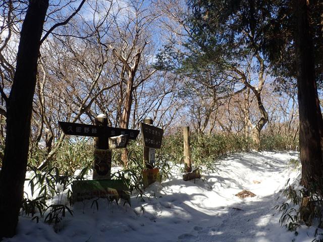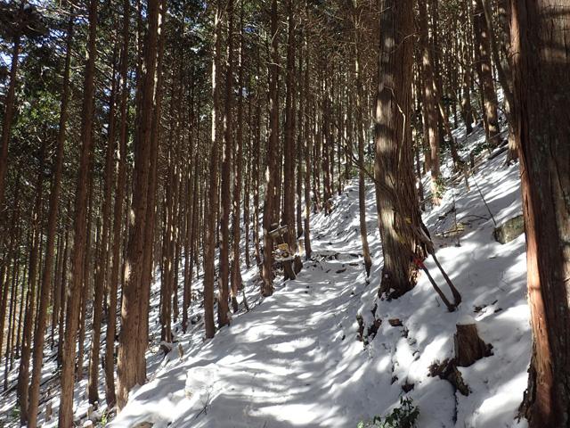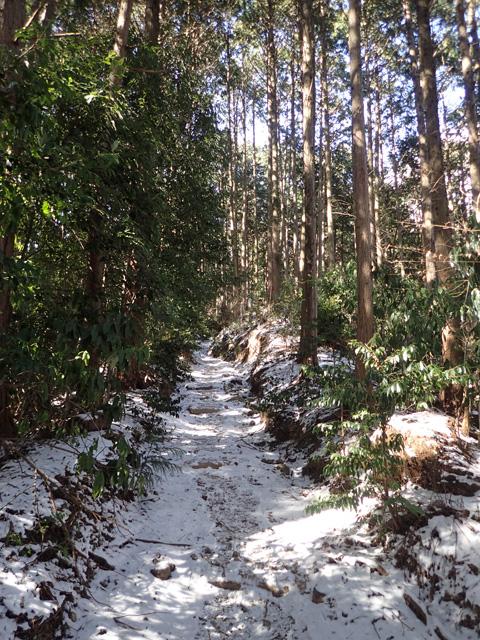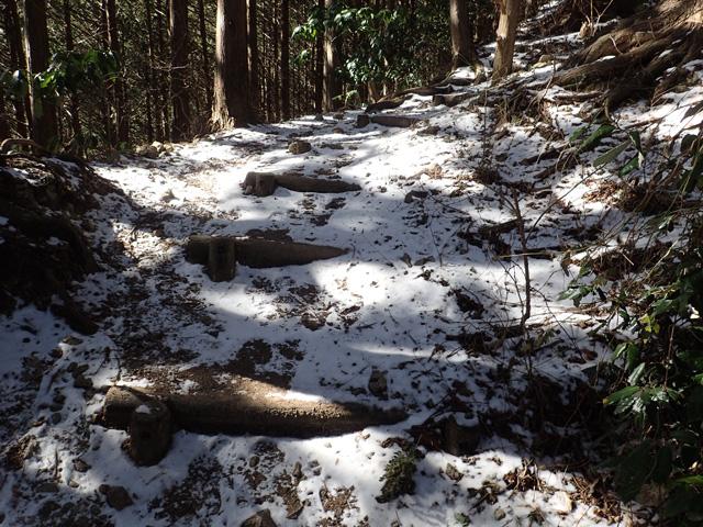 登山口からは少しづつ雪が積もり始め、天ヶ滝への分岐の頃にはたっぷりと雪が積もっていました。