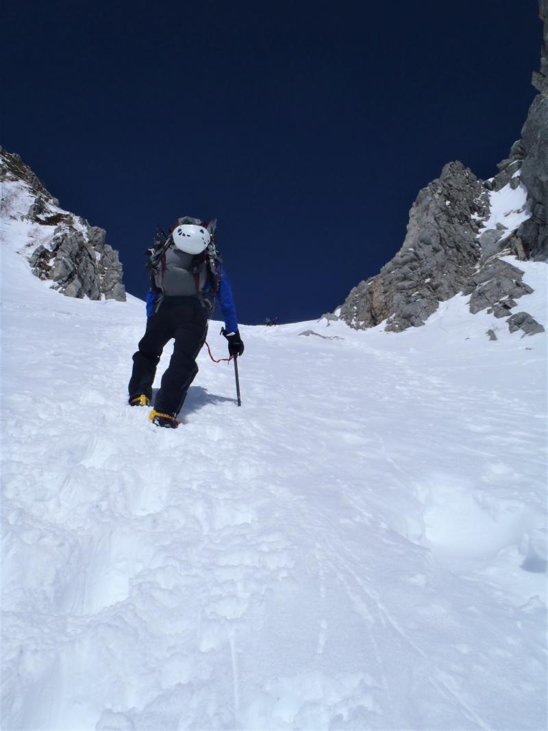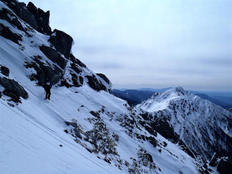 中岳の巻き道は氷と岩のミックスと急斜面で危険