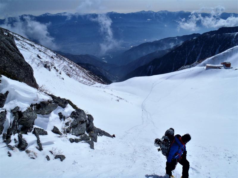 積雪のある木曽駒ヶ岳は以前にスキー板を担いで来た事はありますが、