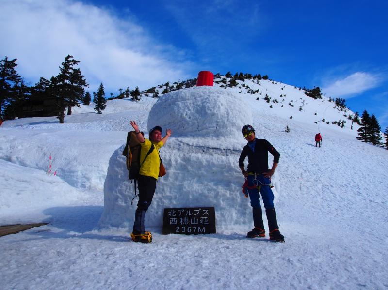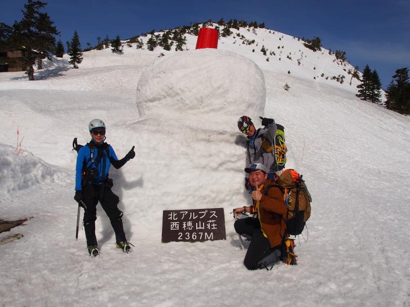 目と口のない巨大雪ダルマと遊び、いよいよ丸山➡西穂独標へ!