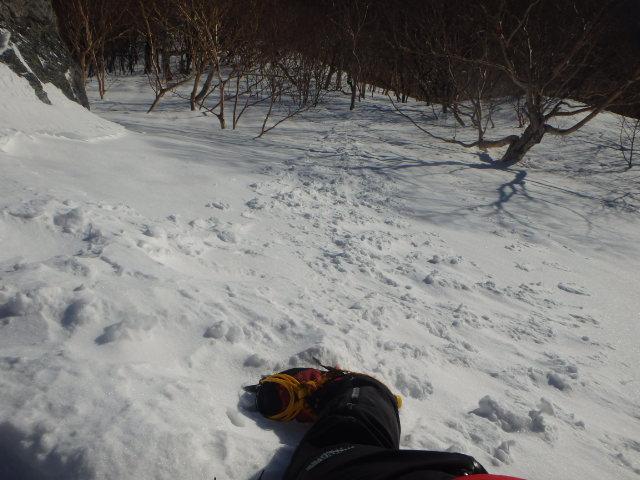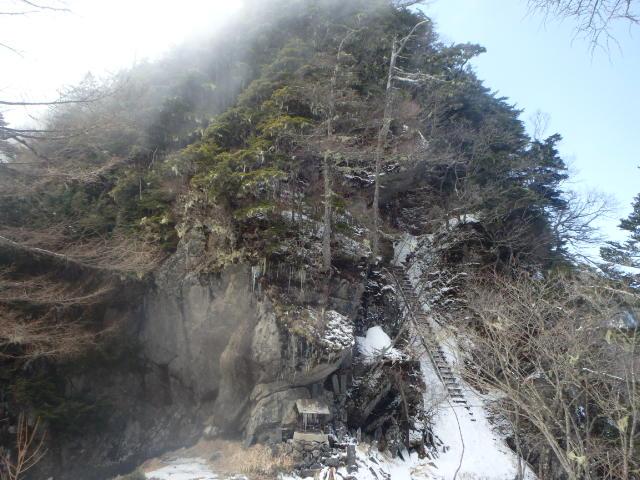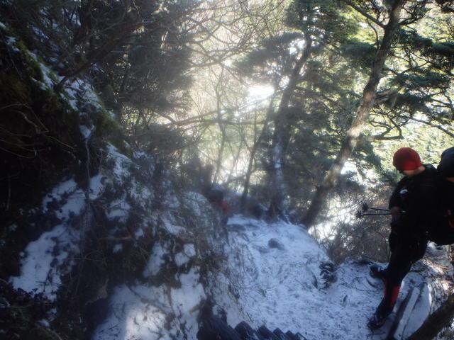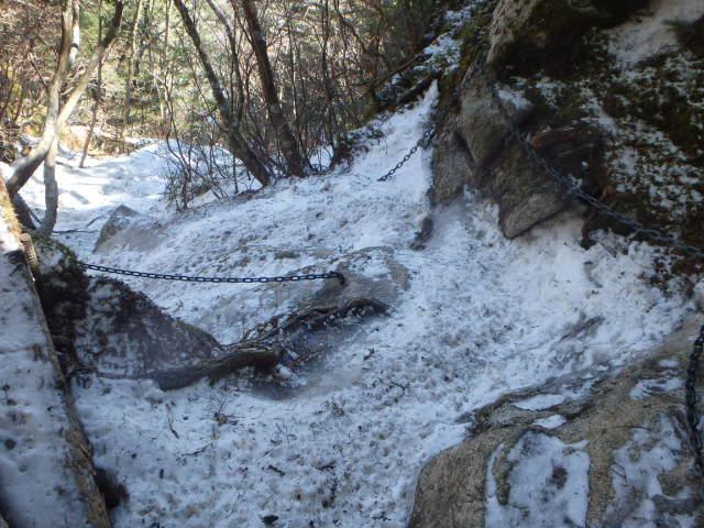 刃利天狗から先のはしごや鎖は一部凍っています、ストックなどはしまって3点支持で