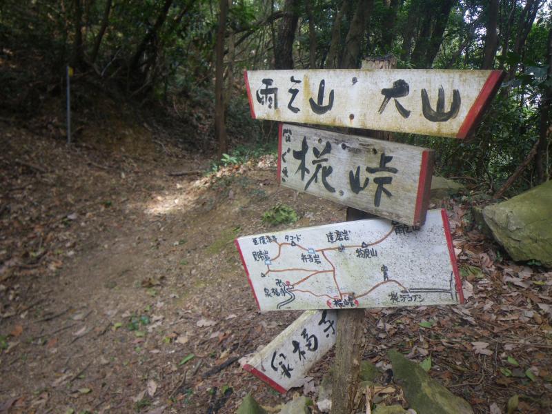 - 雨乞山登山口・伊川津揚水機場(30分)雨乞山(20分)物見山(8分)椛分岐(6分)タコウド(6分)椛分岐(25分)椛峠(14分)狼煙山(7分)観音の腰掛岩(50分)大山(5分)トンネル北口分岐(15分)あつみ大山トンネル北口登山口(14分)伊川津自生地(20分)雨乞山登山口・伊川津揚水機場