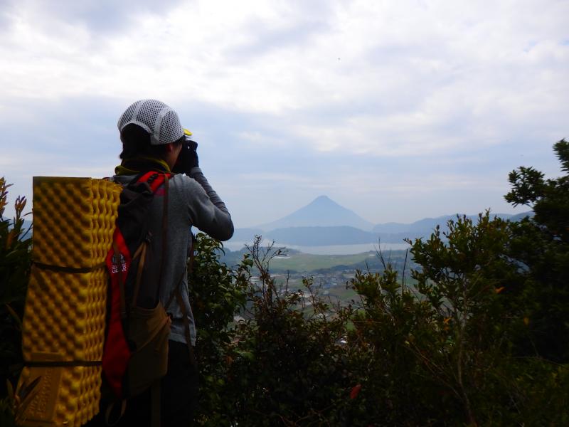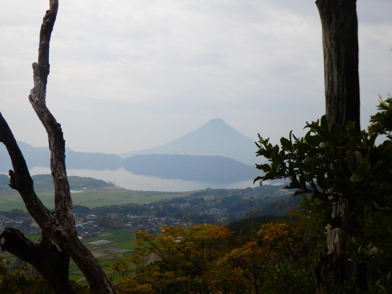 思ったよりも荒れた登山道でしたが、展望スポットから池田湖越しの開聞岳を眺めることができました