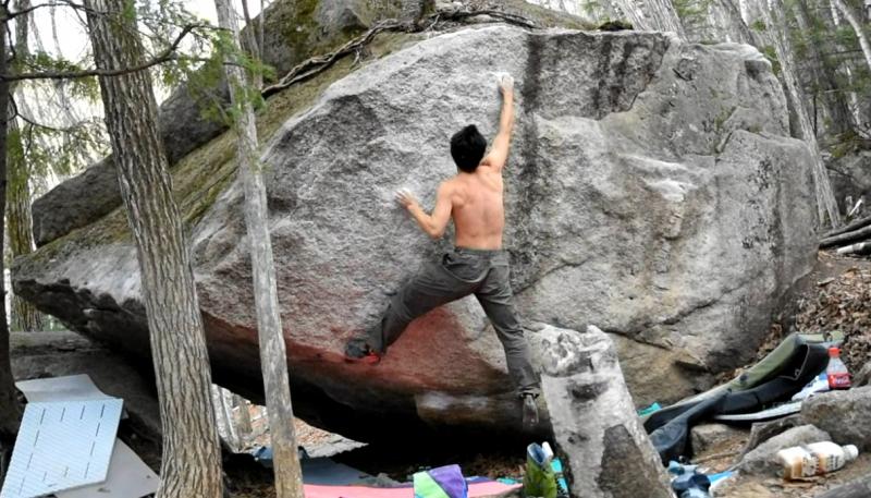 この日は夜通しの運転で朝に小川山に到着してトライし始めましたが、寝不足で身体全体に力が入らずボワーっとした感覚でした。さらに気温もぐんぐんと上昇していたので11時の時点でトライを中断し、この岩が日蔭に入る16時まで散歩をしたり昼寝をしてレストをしました。