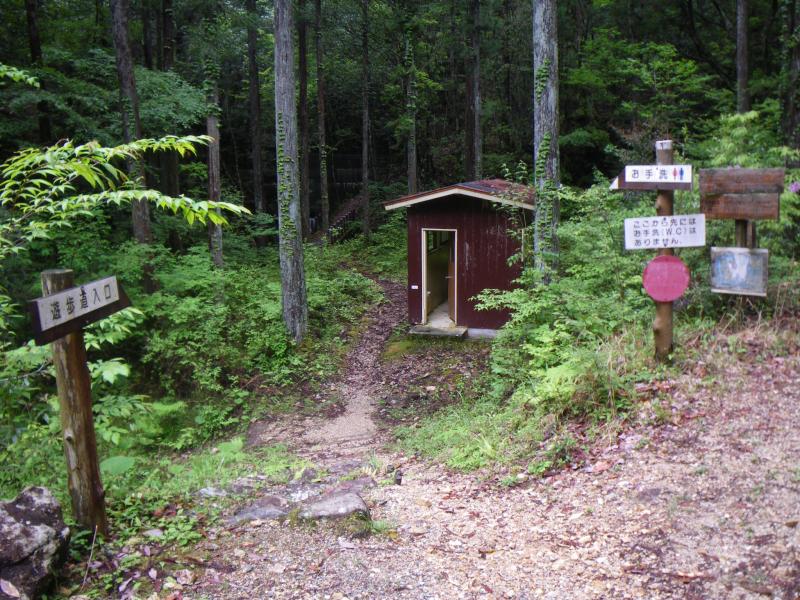 ④国体尾根登山口までは未舗装林道が続き、ここに最後のトイレがあります