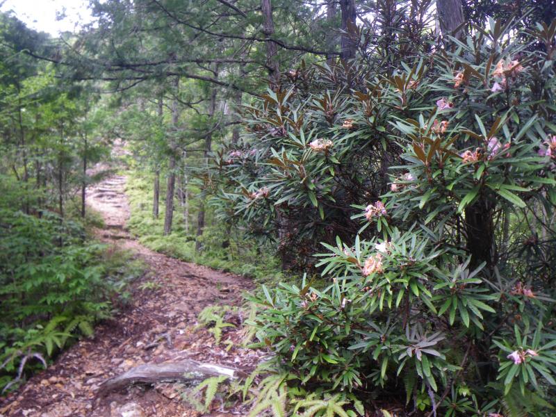 ⑤国体尾根にはホソバシャクナゲの自生地があり、鎖場付きの岩場前後によく見られます