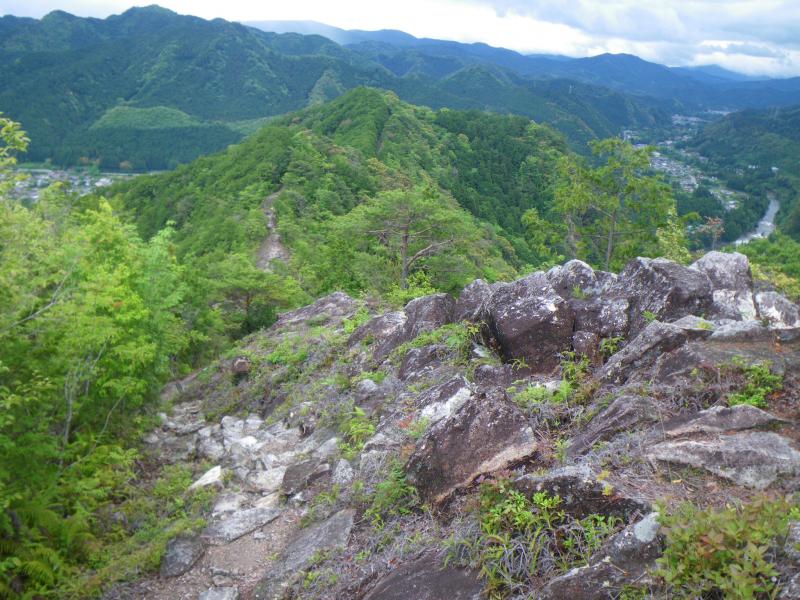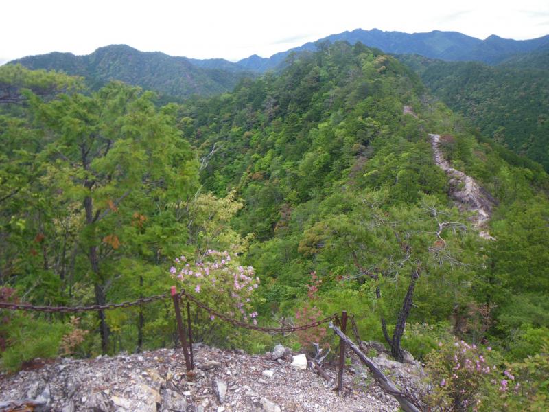 ⑦西尾根の稜線からは同じく鎖場付きの岩場が定期的にあり、宇連山までほぼ登りです