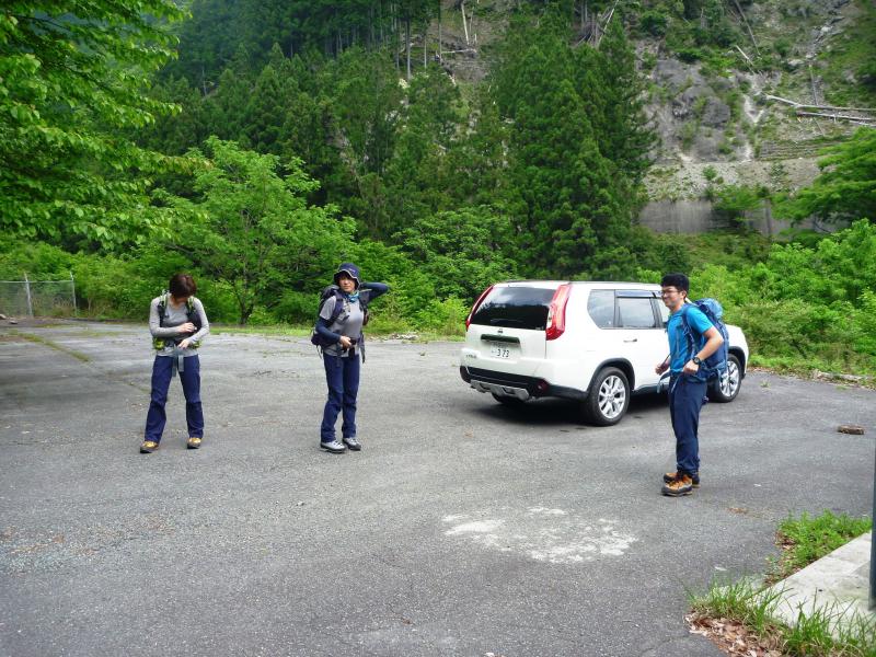 - 林道を走ると発電関係の施設と駐車スペースがあり、