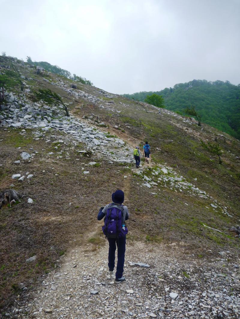 植林帯をジグザグに登っていく単調な感じでした。植林帯を抜けるとひらけた尾根