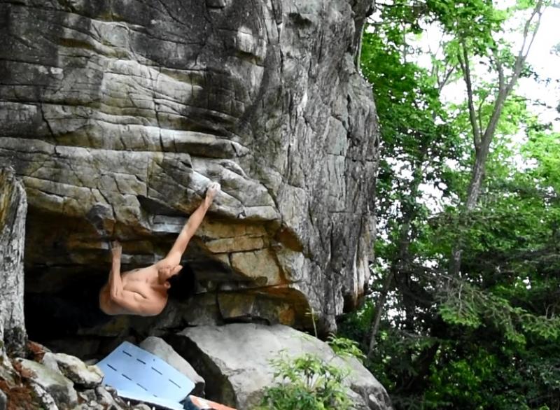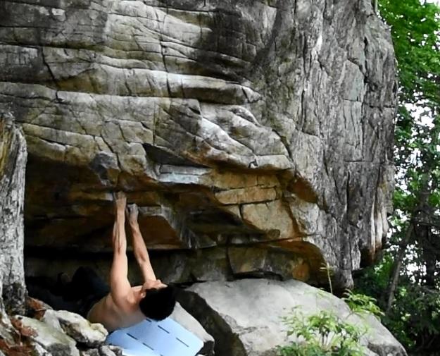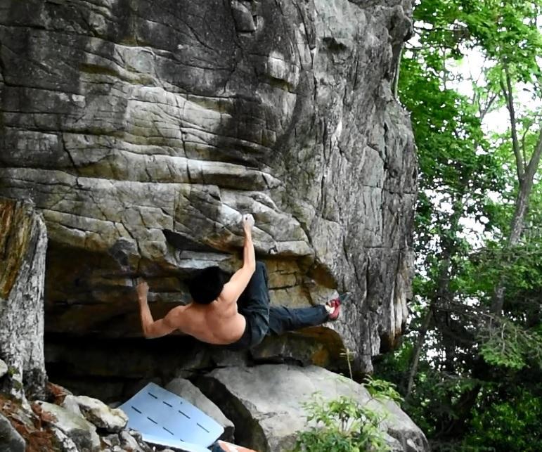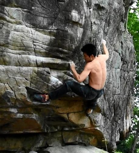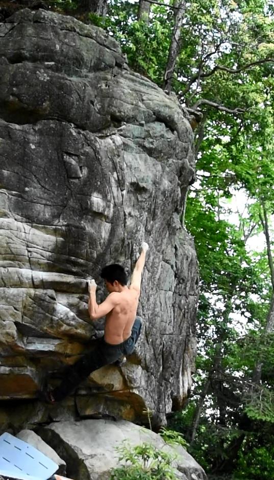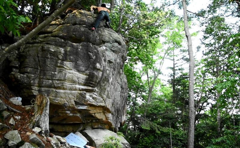 この岩は、少しハイボルで、ランディングもあまよくないので、トライする際はマット位置などしっかり確認してトライしましょう!
