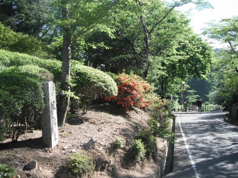 何度か歩いている頭巾山コースから下山。ツツジは終わっていましたが新しく設置されたと思われる固定ロープがありました。「のぼろ」2018春号に頭巾山コース〜三郡山〜内ヶ畑コースが掲載されたせいでしょうか。ありがたく使わせていただき、昭和の森に下山。