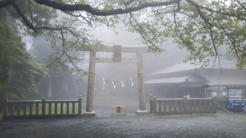 スタート地点である鳥居は霧がかかっており、厳かな雰囲気がありました。