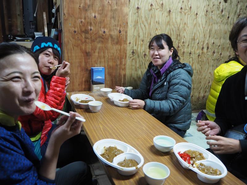 砂走館は好日山荘の常宿と言ってもいい程お世話になっている山小屋。絶品カレーと親切なスタッフが出迎えてくれるおすすめの小屋です。田中ガイドが食べ過ぎないよう皆に忠告している横で、私はこっそりカレーお代わりしてたのでした。
