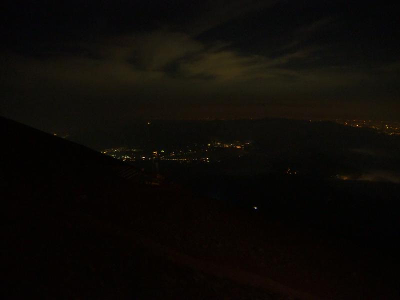 最初の難所、馬の背までの蟻地獄のような砂場も堅実にクリア、御殿場ルートに合流すると南東側の裾野が遠くまで伸びていました。ここまで来ると今夜の宿・砂走館も見えましたが、見えているのに一向に辿り着かない――富士山にはこういうシーンが沢山ありますが、ここは我慢のしどころ。上は見ないで、だんだん小さくなる宝永山や山中湖を眺めながらリラックスして登ると、いつの間にか到着していました。