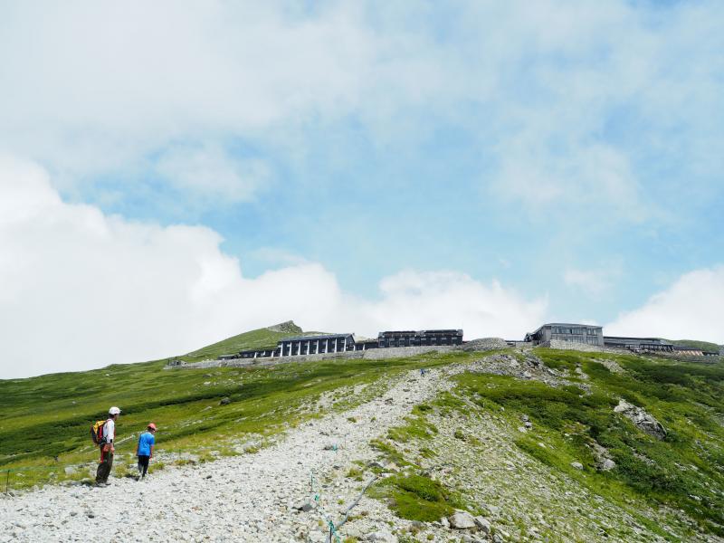 大雪渓が終わると、白馬頂上宿舎まで岩肌をひたすら登ります。