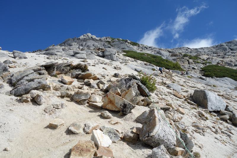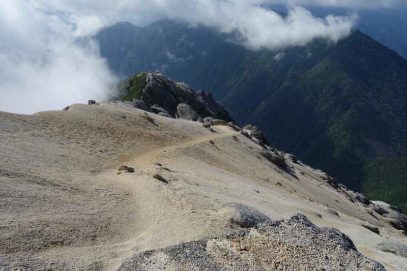 ○山頂から北沢峠方面へ下りると、白い砂が砂利のように登山道にあり、非常に足元滑るためストックを使うと楽に下れます。