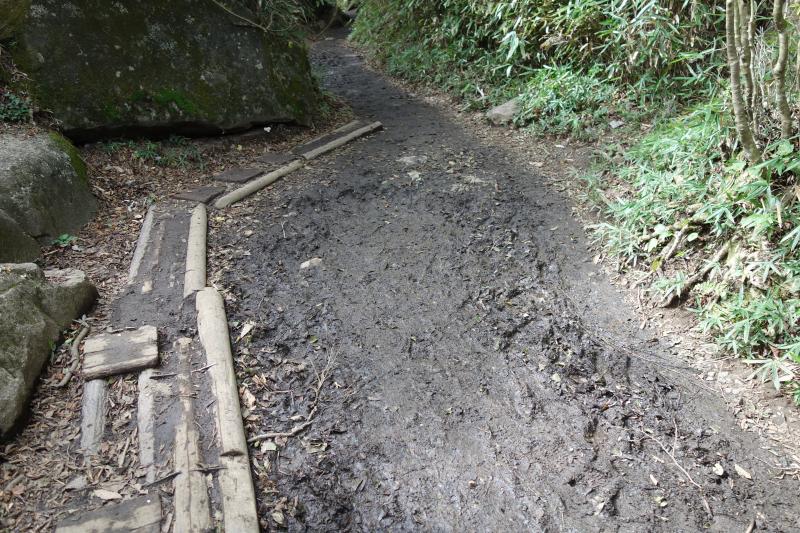 - ○整備された登山道です。コースの後半は大きな岩や石が出てきて手を使うことになります。手袋を持っていきましょう。