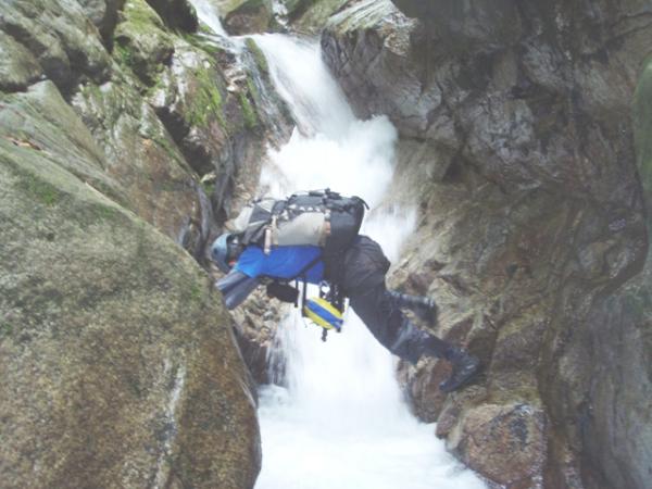 沢へ降りてオツル滝下まで行くのにも神経を使います。