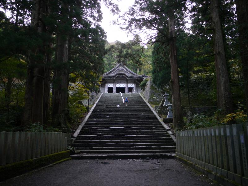 - ・大神山神社奥院は石垣の一部などが補修工事のため、石段の幅半分に柵があります。