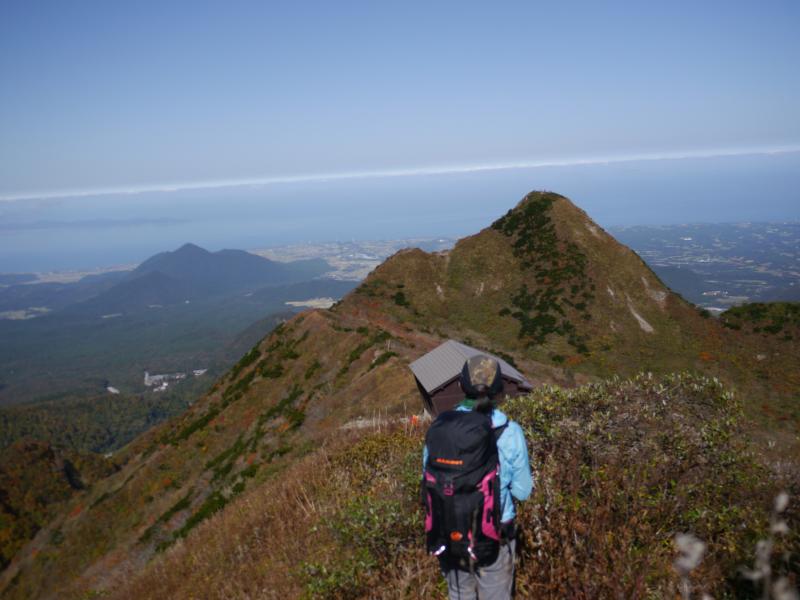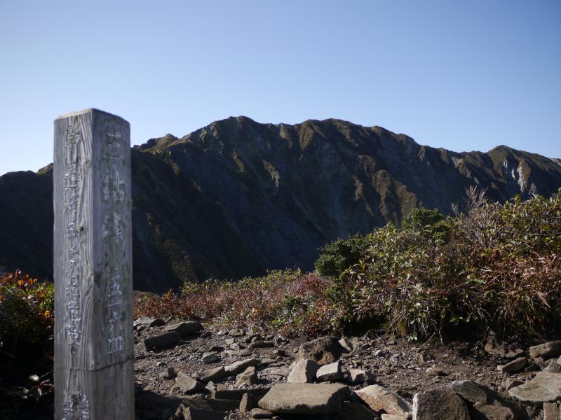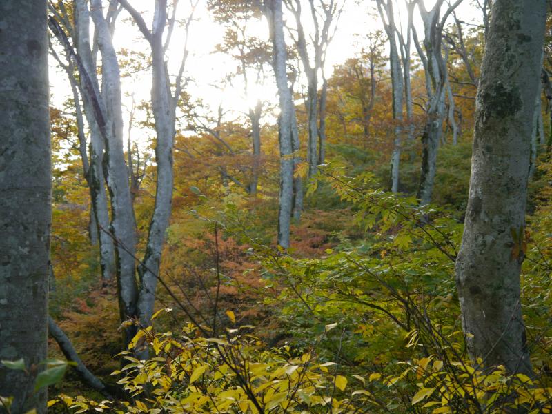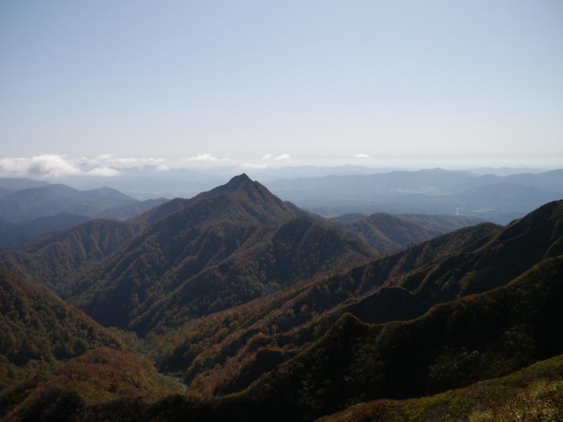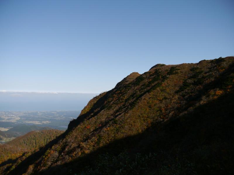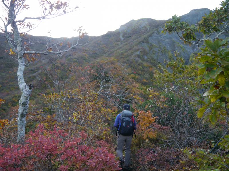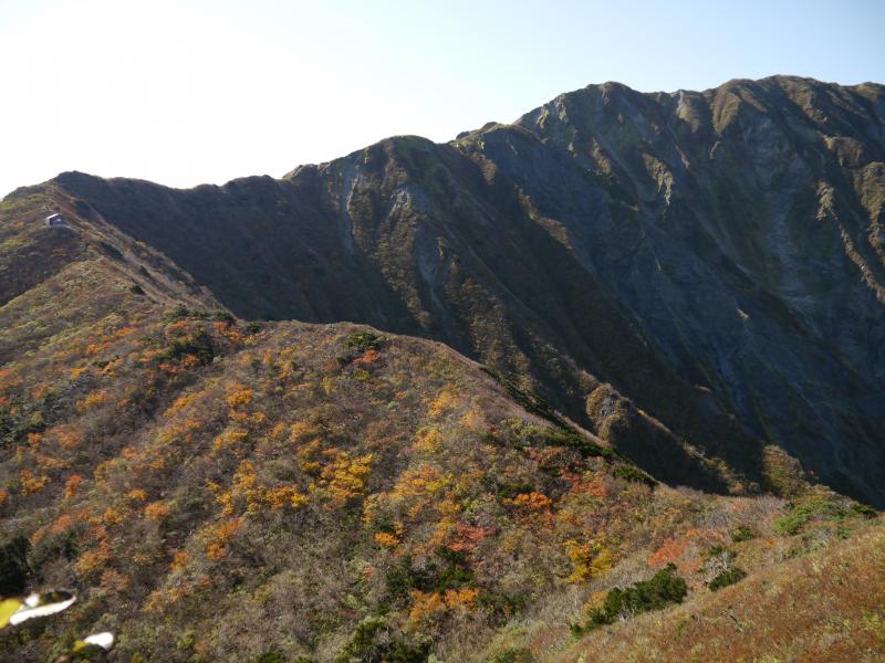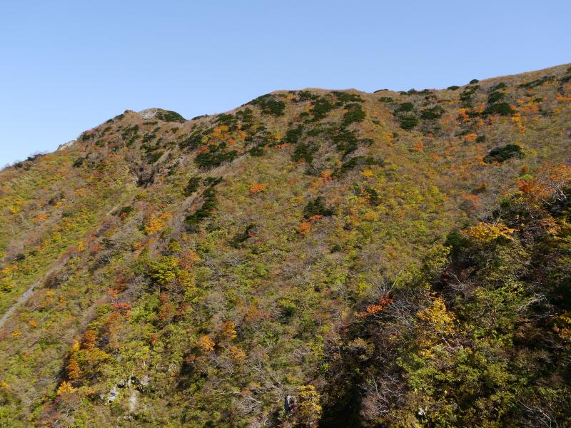 ・夏は稜線のお花畑が素晴らしい三鈷峰ですが、秋は色とりどりに彩どられた山腹が感動的です。時々遠くに修験の法螺笛を聞きながら展望が広がるたびに立ち止まるのでなかなか先に進みません・・・。