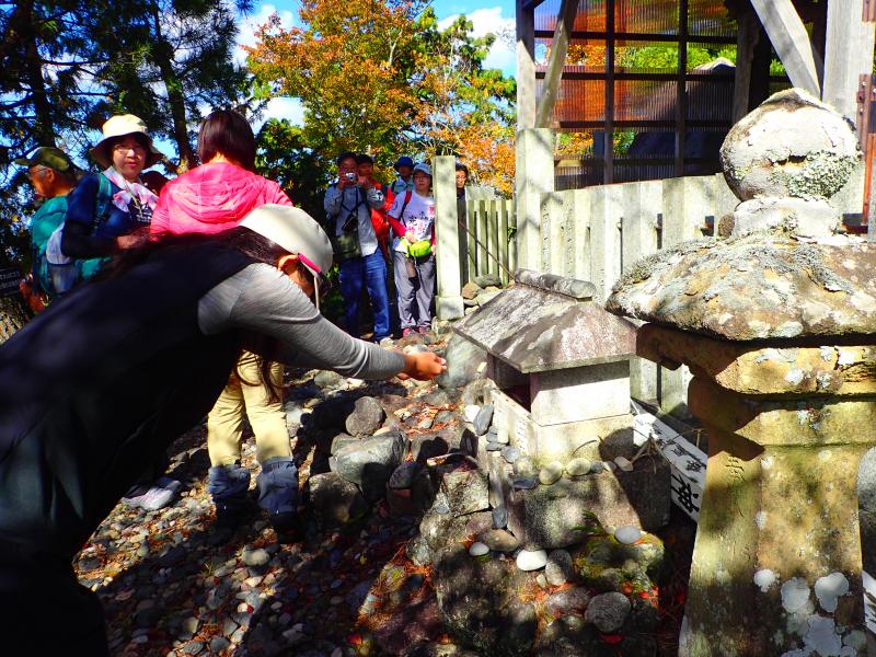 頂上の三角神社では、力石の奉納とお待ちかねのお弁当タイム。