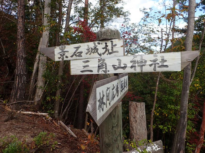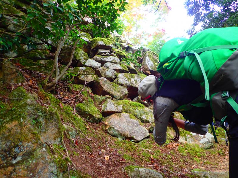 - 用瀬総合支所(30分)女人堂(90分)三角山山頂(45分)景石城址分岐(10分)景石城本丸跡(30分)