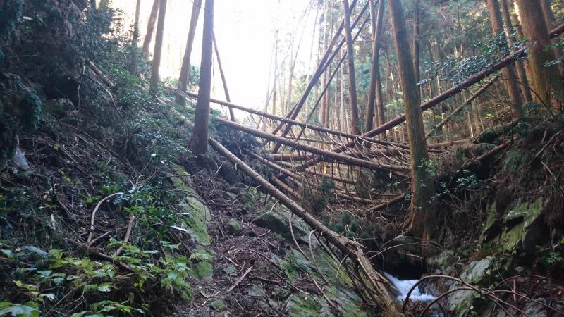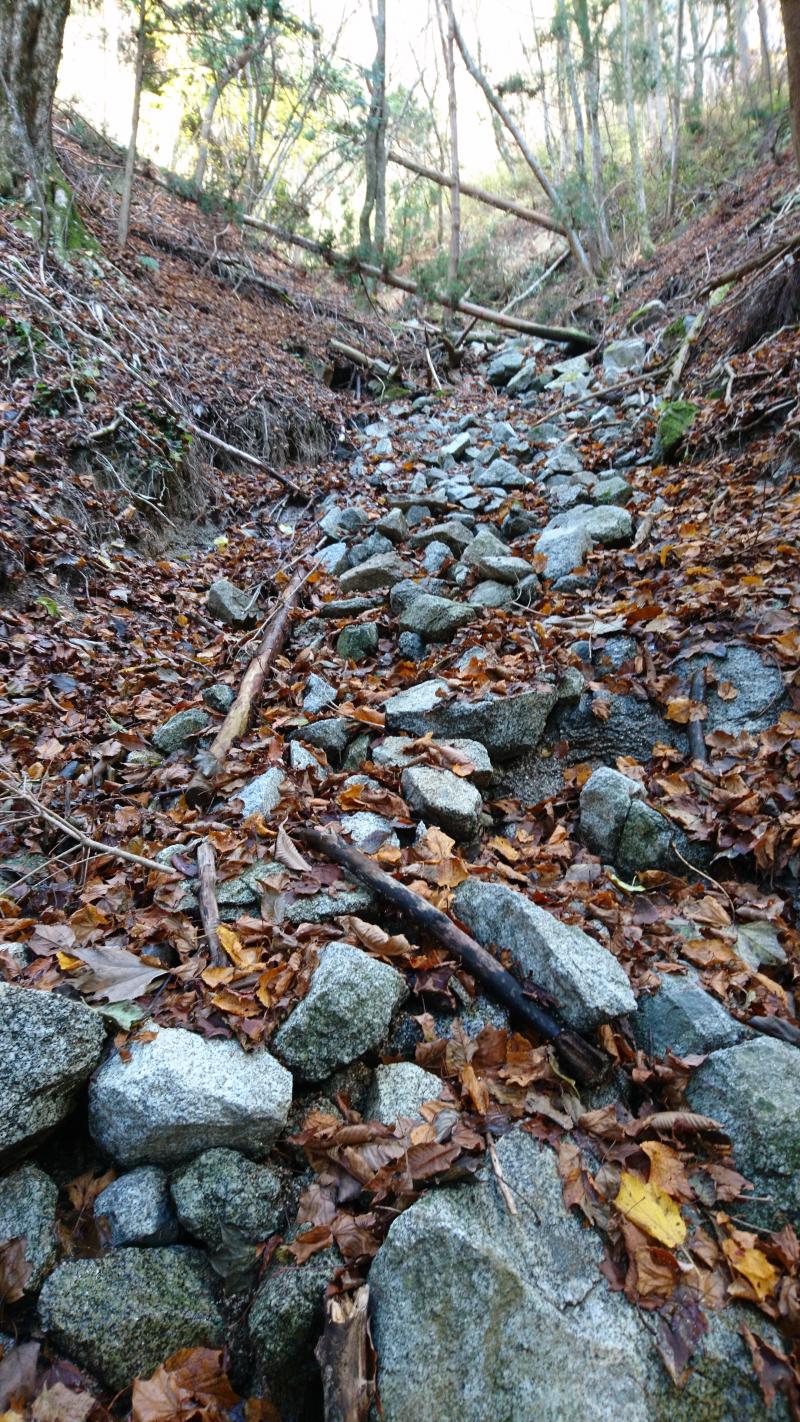 基本は谷筋を詰めることになりますが、途中途中で谷から上がって巻道を通る箇所がいくつかあります。