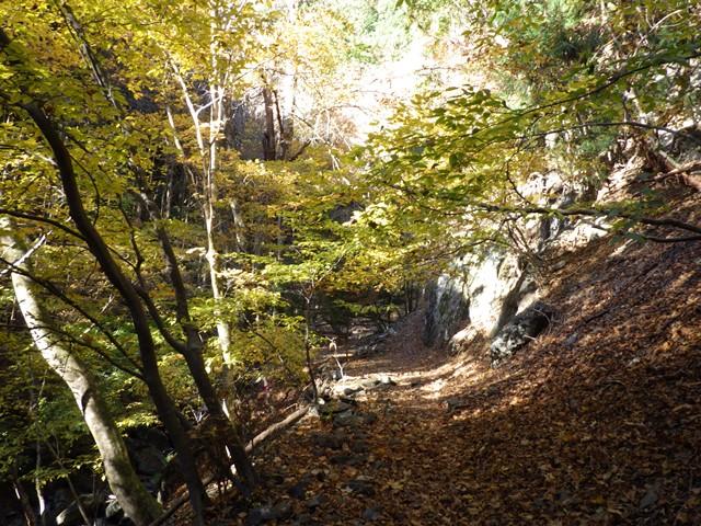 根本沢コースは細く沢から大分高いところに道がついている場所もあります。